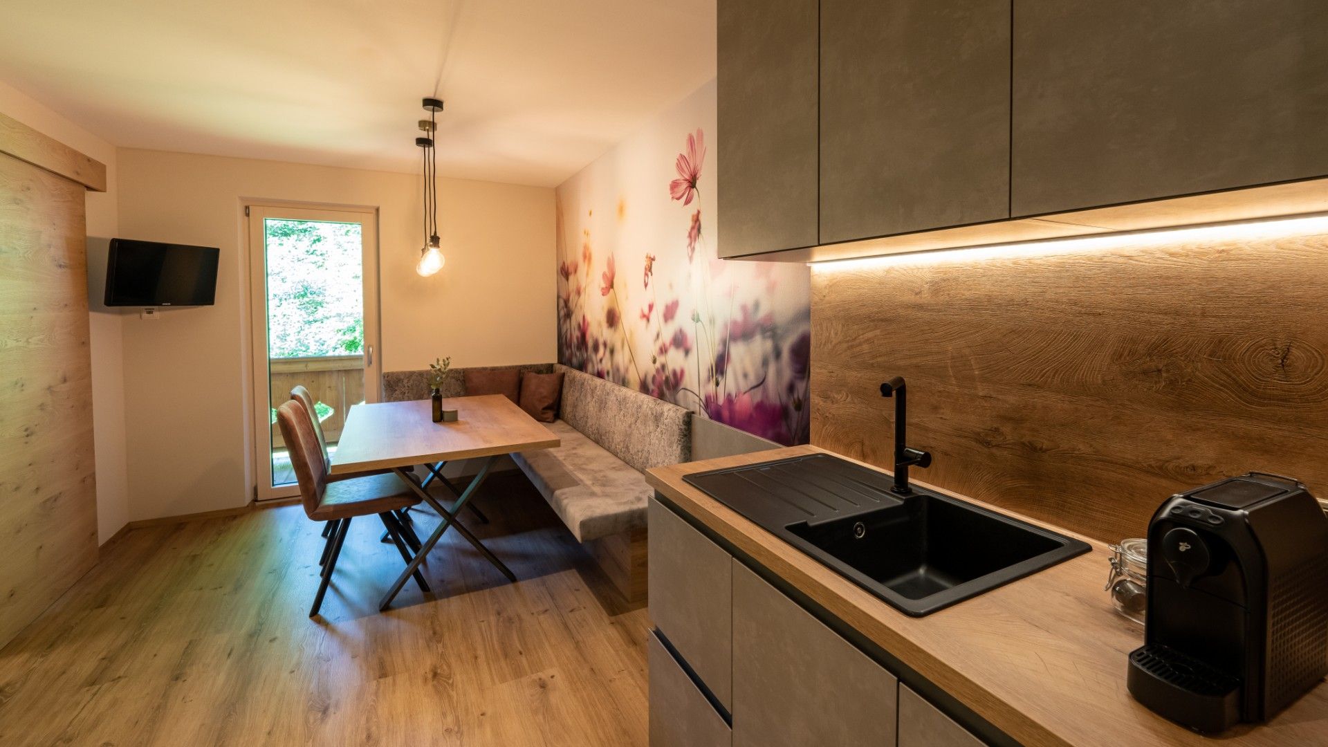 Das Apartement Hanni ist ideal für Pärchen zu Zweit sowie auch mit Kind welche Ruhe & Entspannung suchen. Es verfügt über eine geräumige sowie modernen Wohnküche und ein Schlafzimer mit separaten Badezimmer. Der Balkon mit Blick auf die Berge ist ein Highlight!