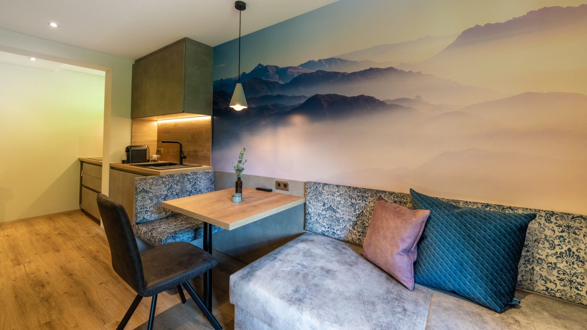 Das Apartement Lois ist ideal für Pärchen aber euch für eine kleine Familie. Es verfügt über eine gemütliche Wohnküche sowie einen Balkon mit perfekten Ausblick auf den Kolm. Im Apartment befindet sich ein Schlafzimmer mit separaten Badezimmer.
